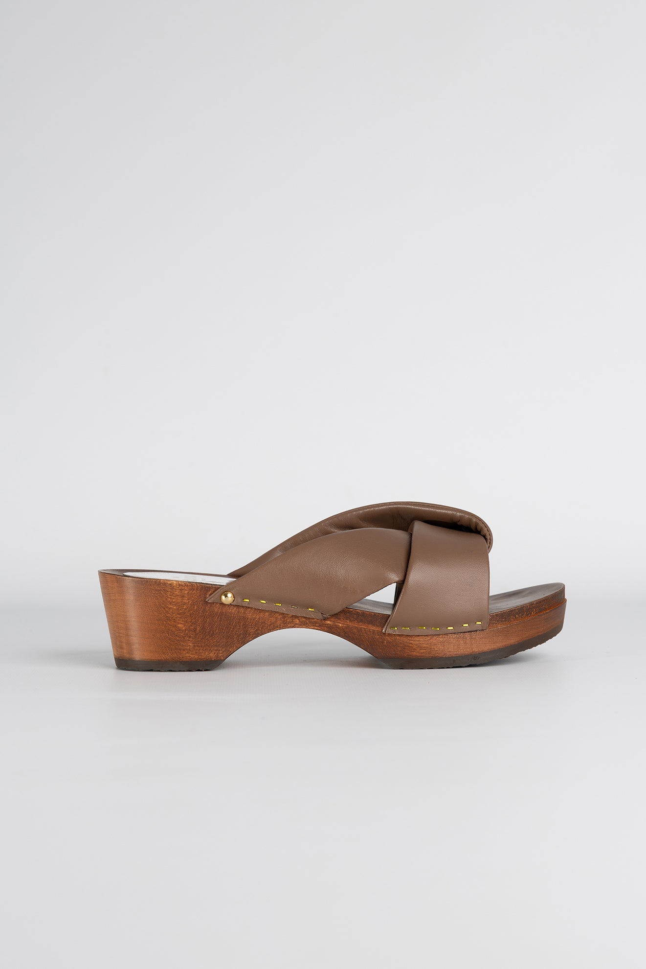 Le YAPI SOFT BRUN incarne une vision contemporaine du sabot mule, où la douceur des matières rencontre une esthétique épurée et inspirée. Confectionné en cuir de métis pleine fleur, doublé de cuir de veau pleine fleur, il se distingue par ses deux larges lanières entrecroisées qui dessinent un drapé fluide et enveloppent délicatement le cou-de-pied. Sa teinte brun profond souligne la richesse du cuir et apporte une élégance naturelle, facile à associer au quotidien. La semelle en bois de tilleul, légère et stable, repose sur un talon de 4,5 cm offrant un confort idéal tout au long de la journée. Orné de 4 clous dorés semi-bombés posés à la main, ce sabot révèle un savoir-faire artisanal précis et une allure subtilement japonisante, à la fois minimaliste et affirmée.