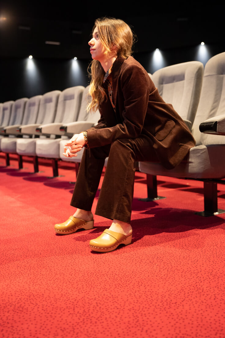 Les sabots YREN ROCK, fabriqués en cuir de vachette pleine fleur à tannage végétal, sont relevés d'une bride de cuir sur le dessus.